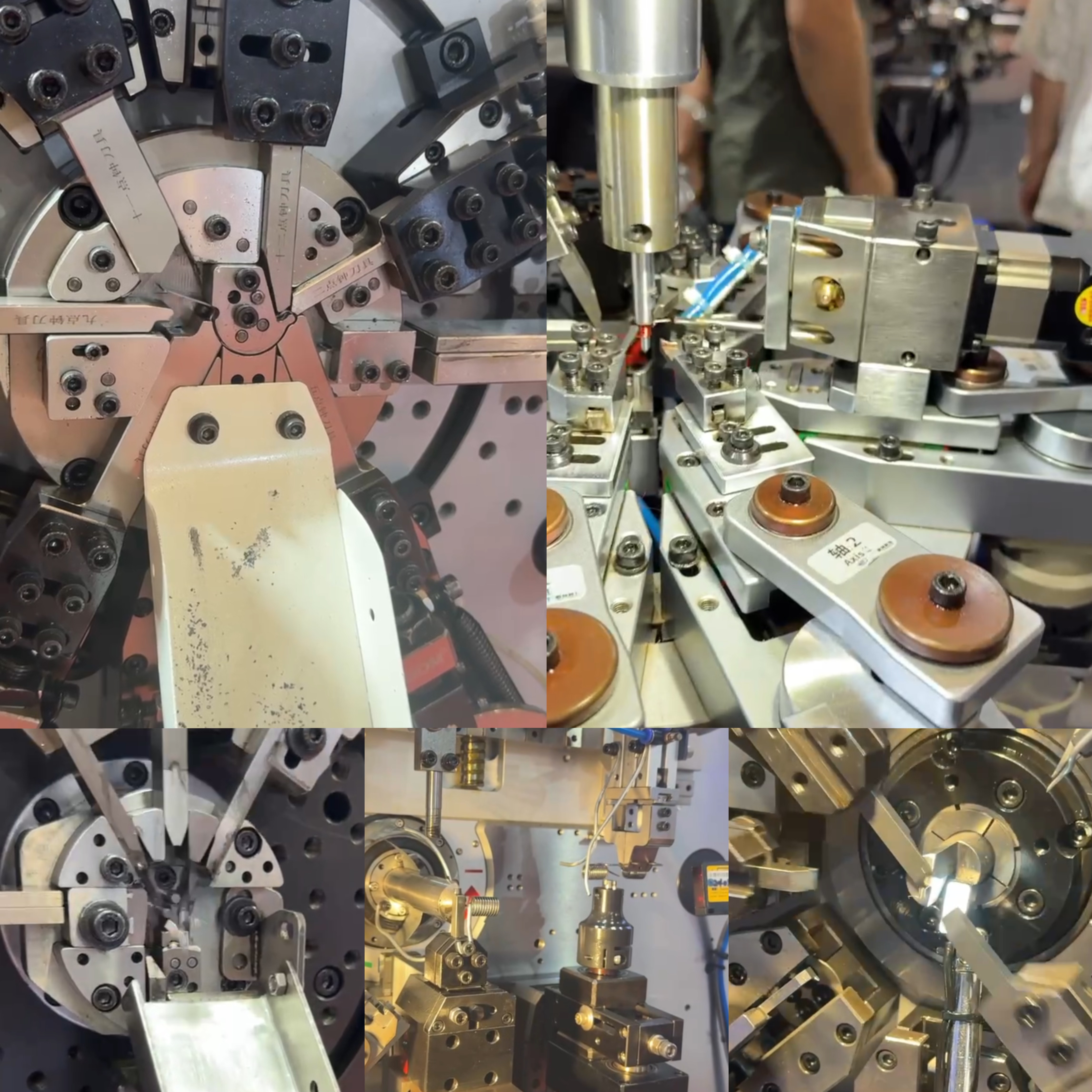 展厅内,首先吸引大家目光的是各类弹簧生产设备。从传统的机械弹簧机到现代化的数控弹簧成型机,设备的迭代更新一目了然。有使用扁线制作弹簧的弹簧机,在保持快速制作的同时,产品的品质也没有大打折扣;有可以一边去皮一边制作的弹簧机,省去了很多时间和成本;有可以制作双份弹簧的弹簧机,产量可达到一分钟五百个;有可以同时进行两个不同卷绕的弹簧机,省时省力;有可以制作线径达到0.17mm的弹簧机,小到需要配置显微镜观看。每一个先进的弹簧设备都在告诉我们,你需要什么样的弹簧尽管提供,会有设备帮助我们解决。